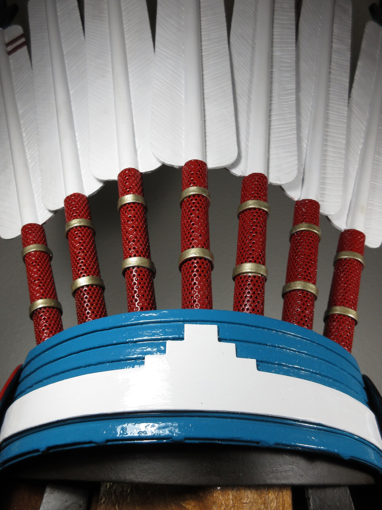 The red bottom of each "feather" is trade felt surrounded by trade brass rings.