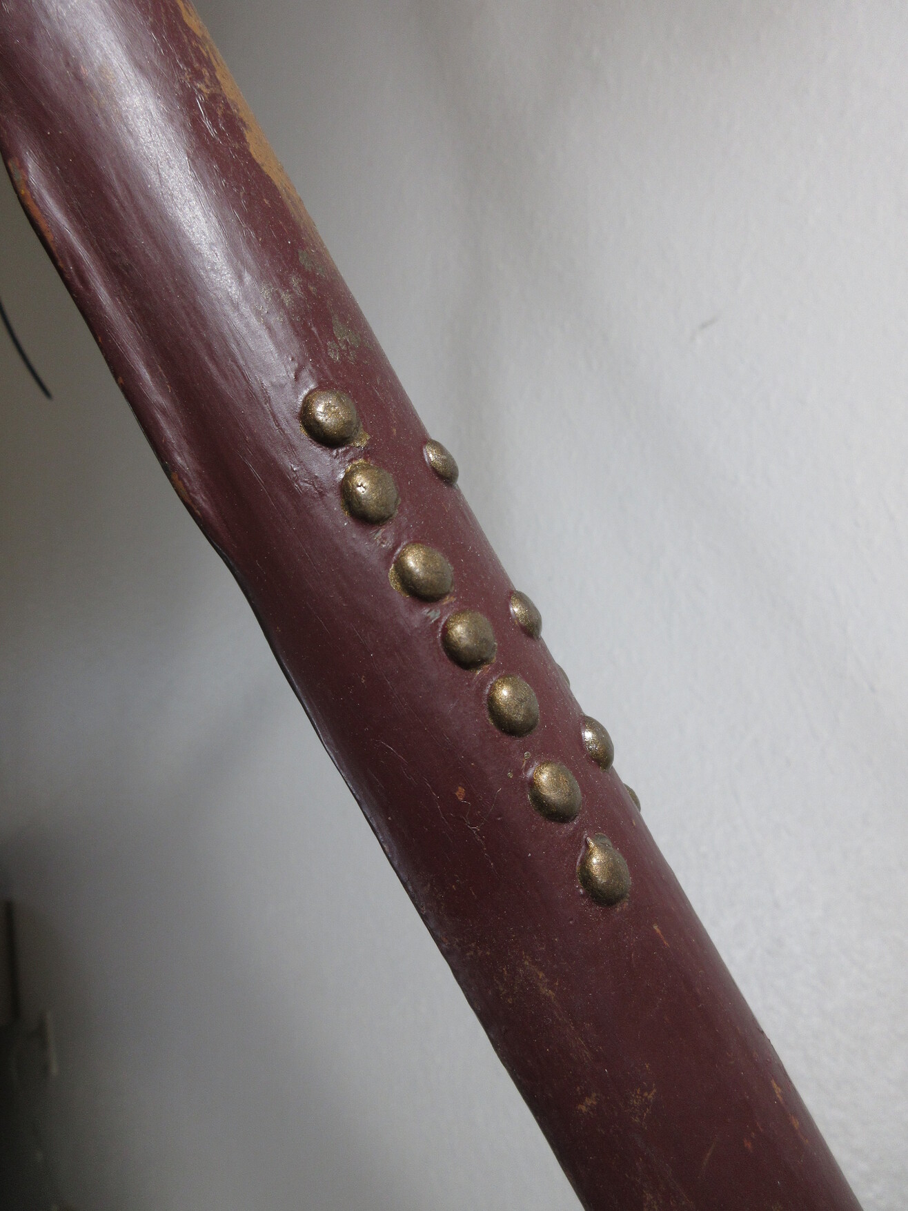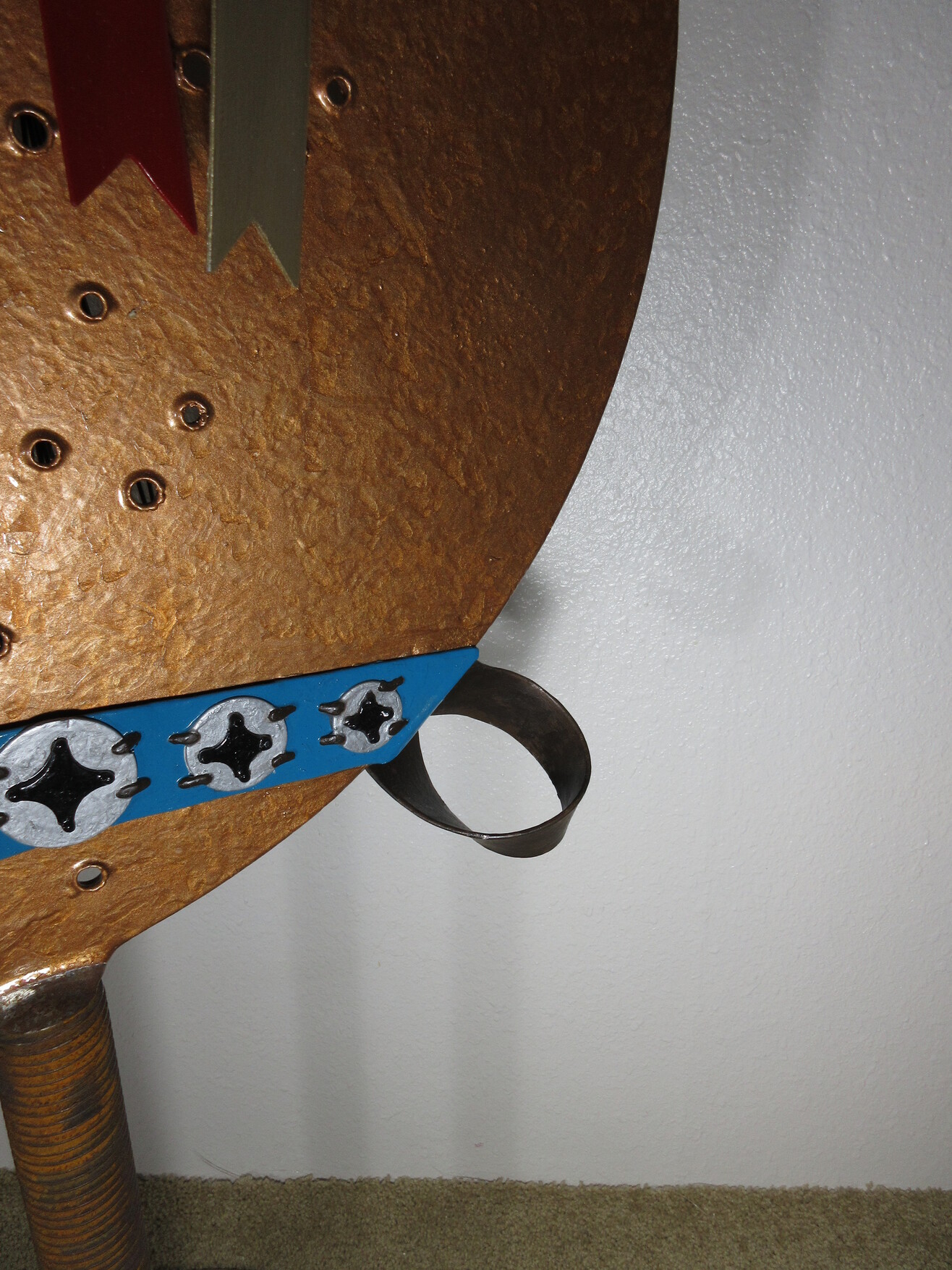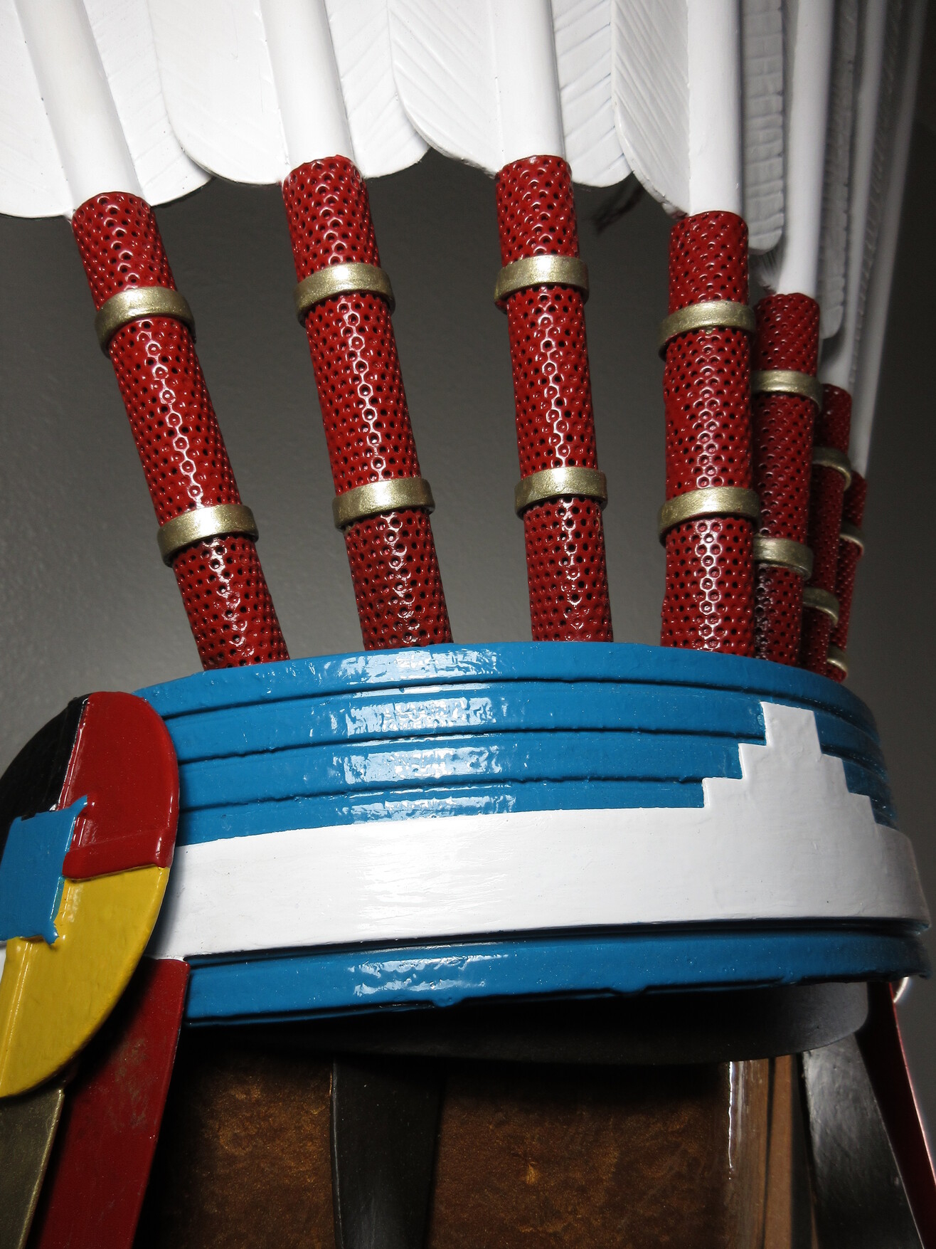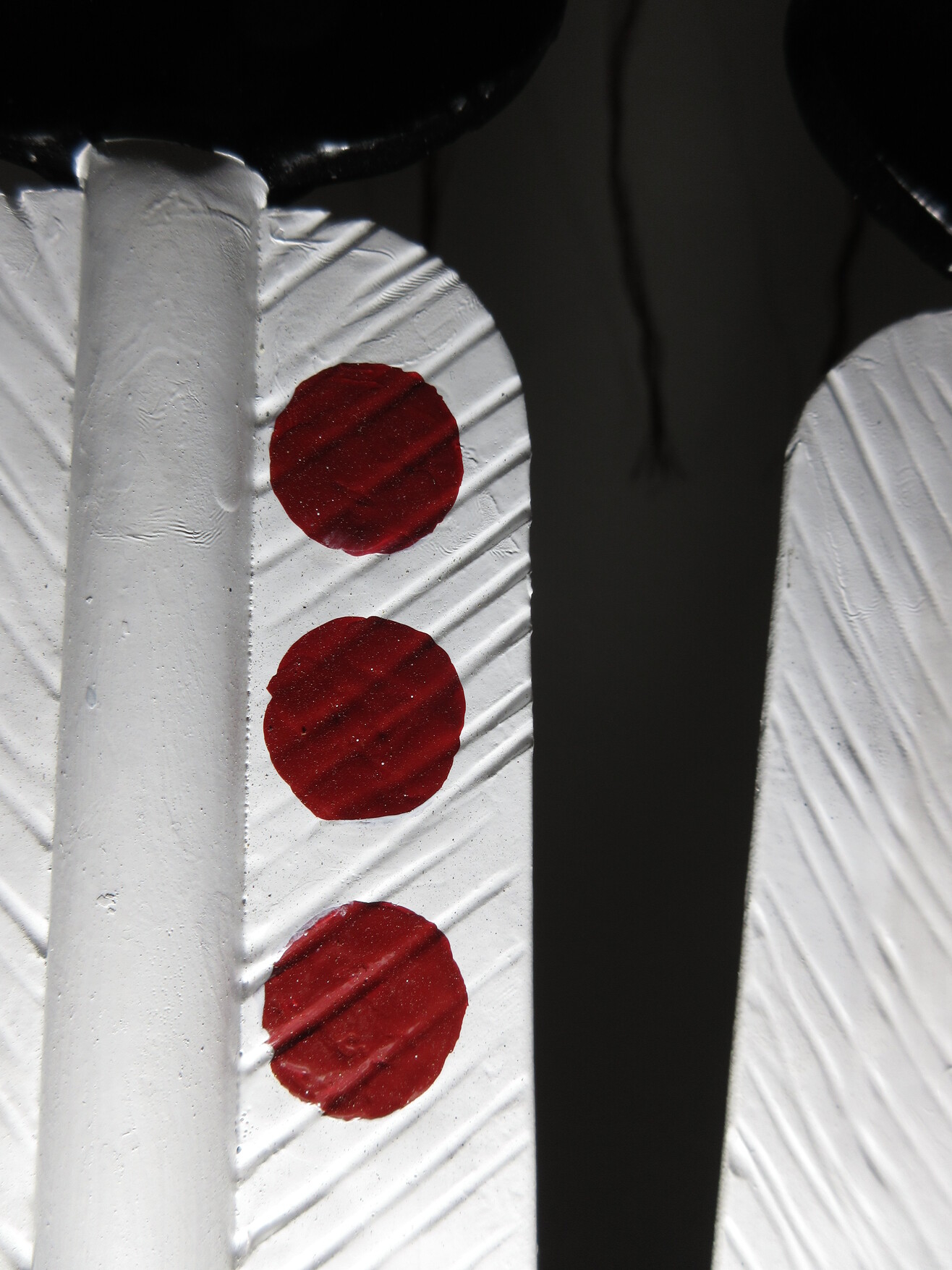 The red bottom of each "feather" is trade felt surrounded by trade brass rings.