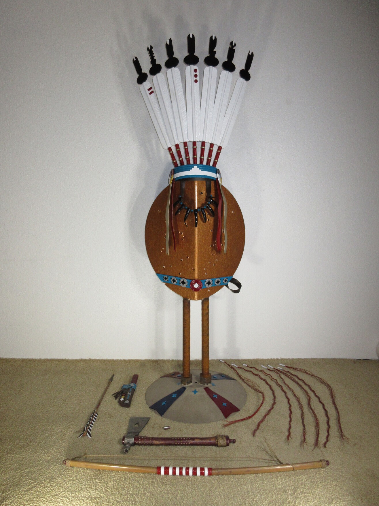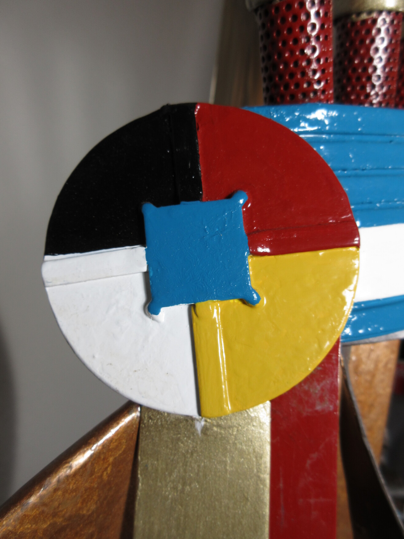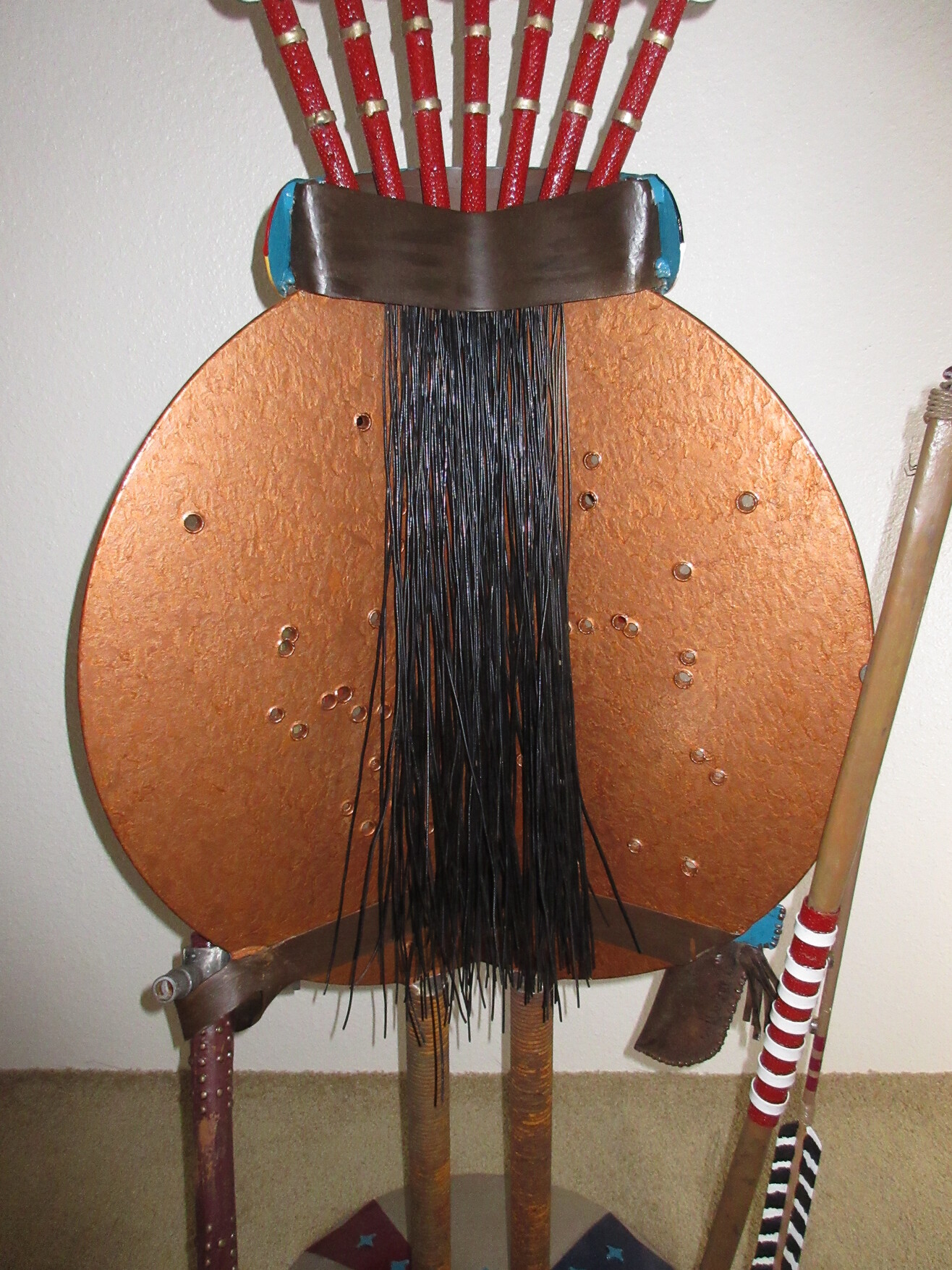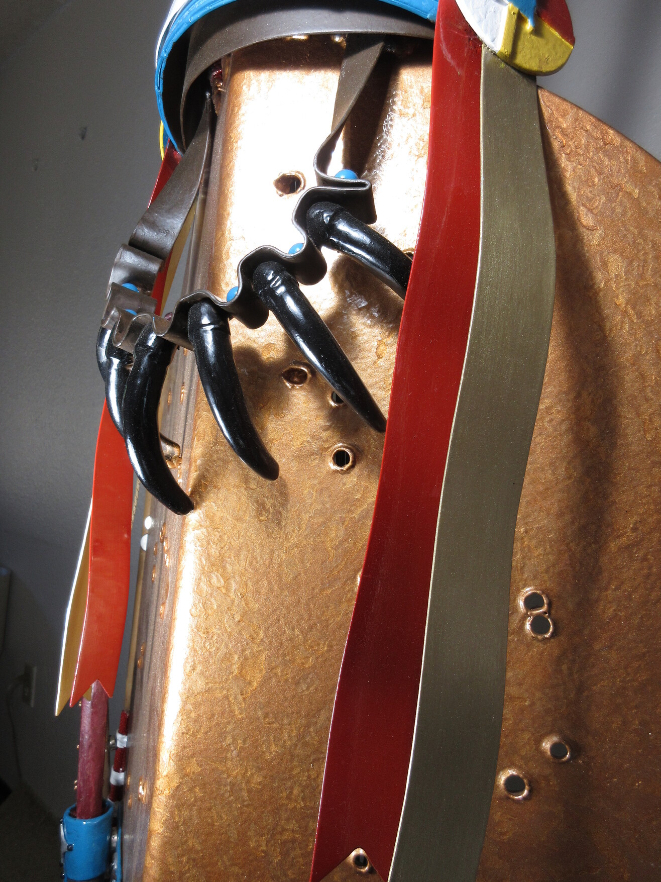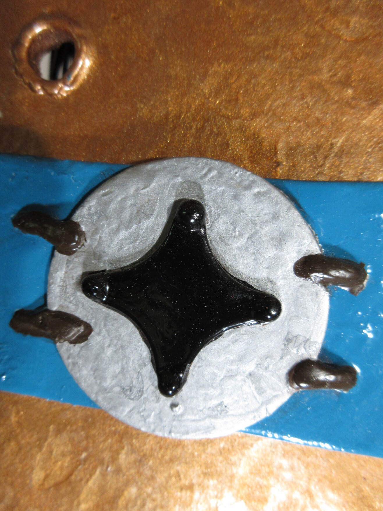 The red bottom of each "feather" is trade felt surrounded by trade brass rings.