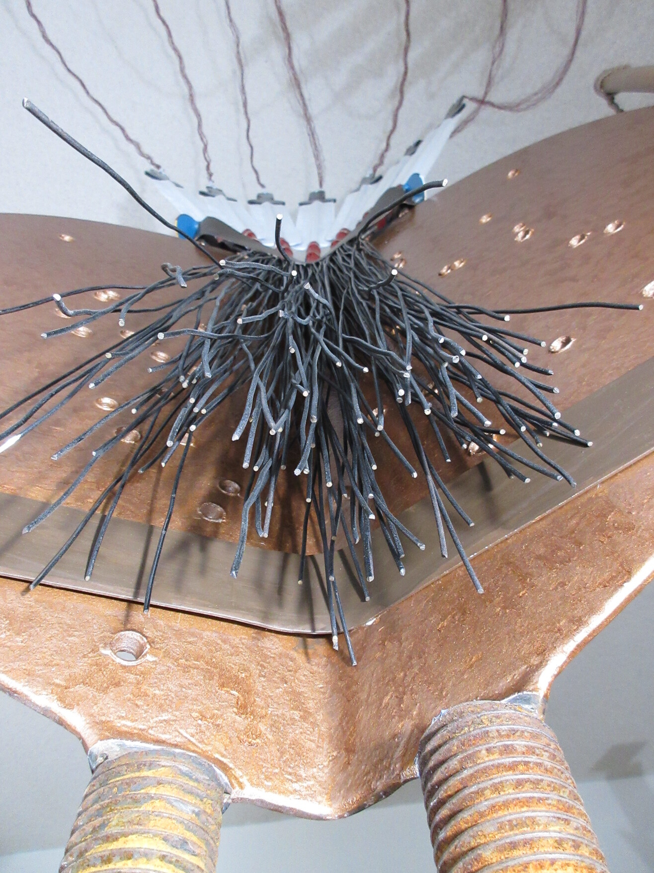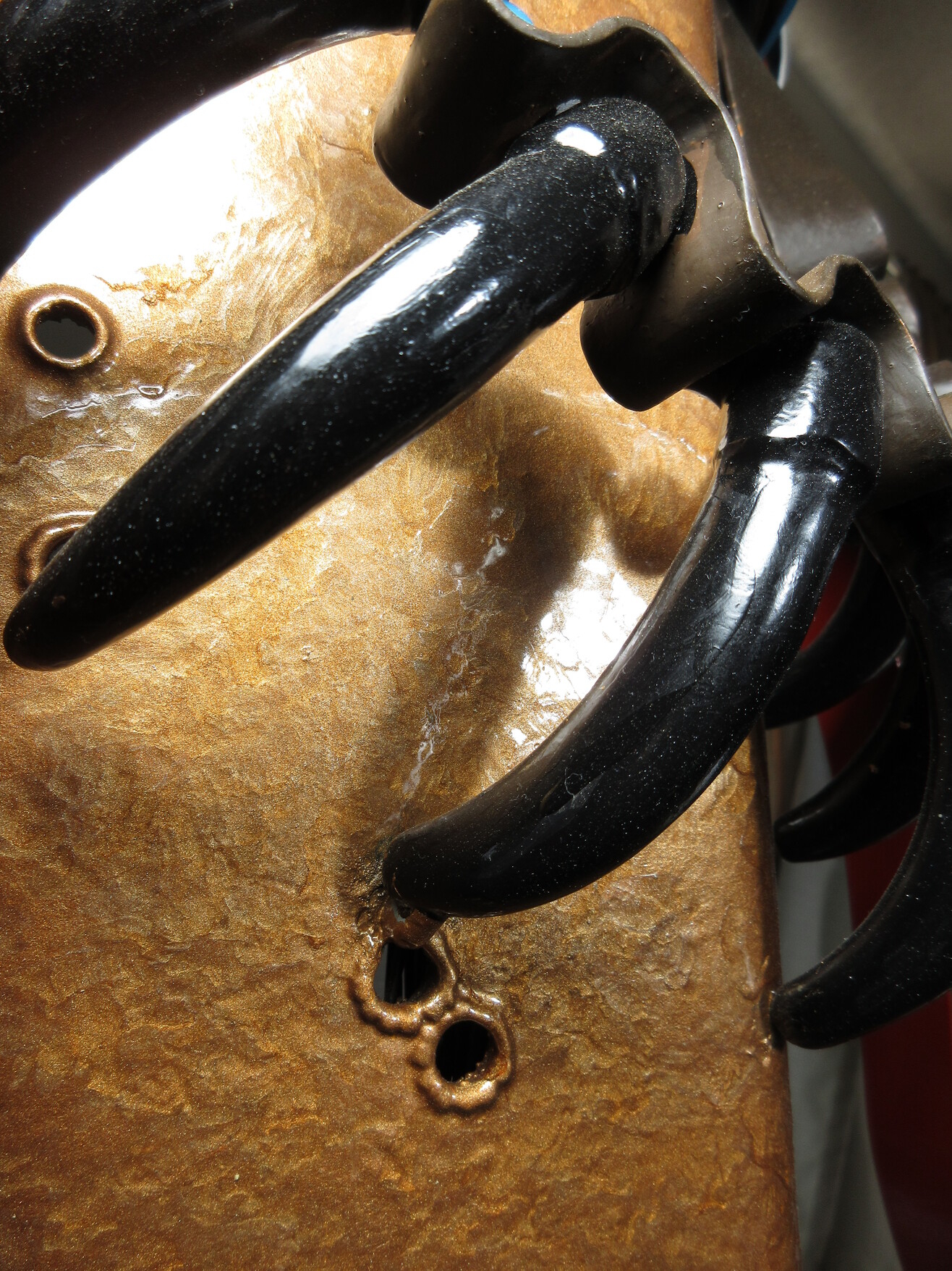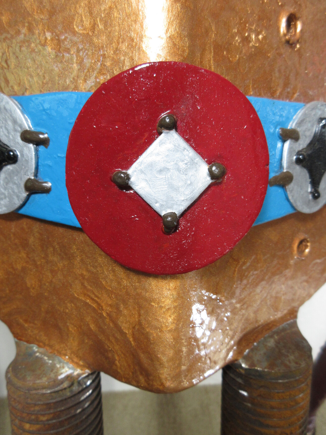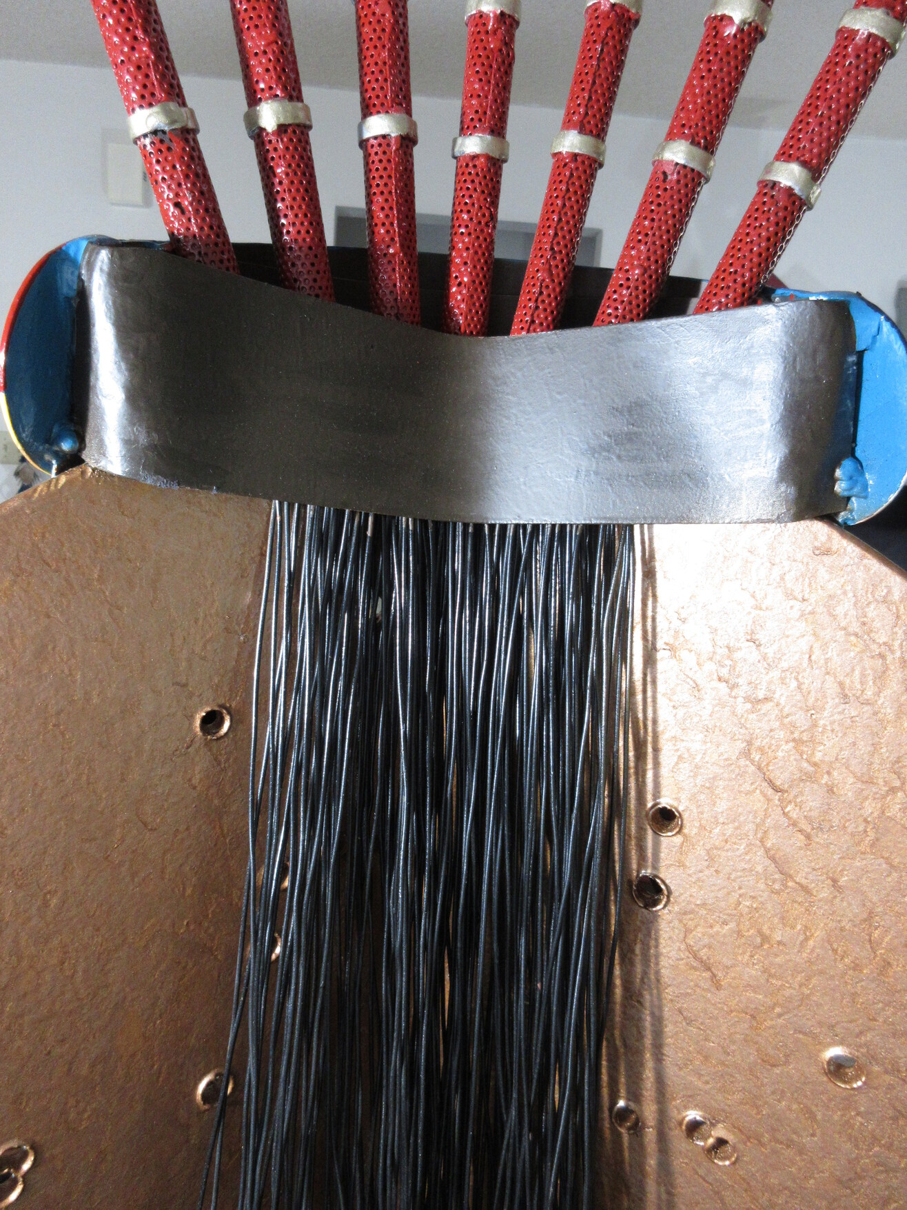 The red bottom of each "feather" is trade felt surrounded by trade brass rings.
