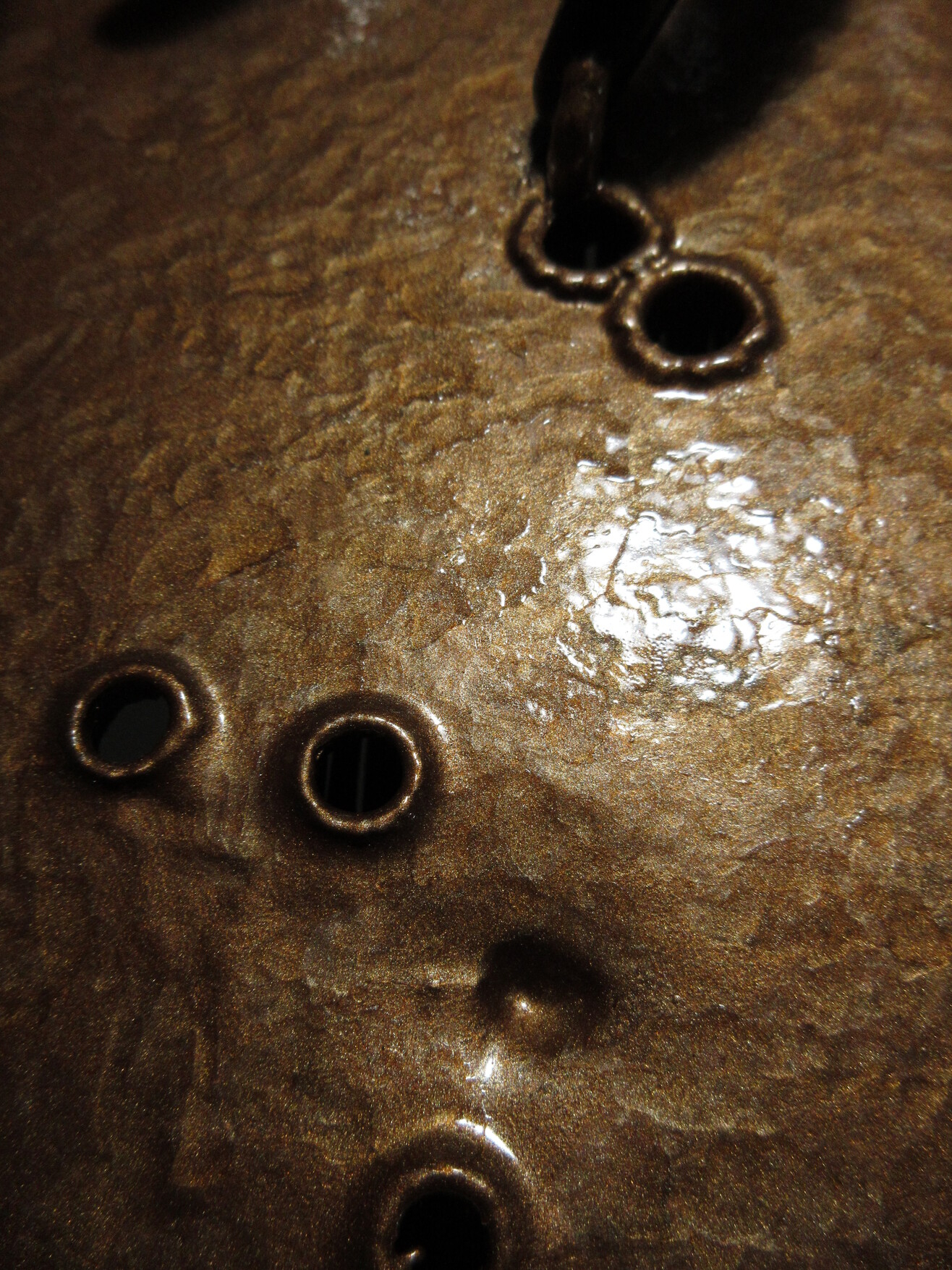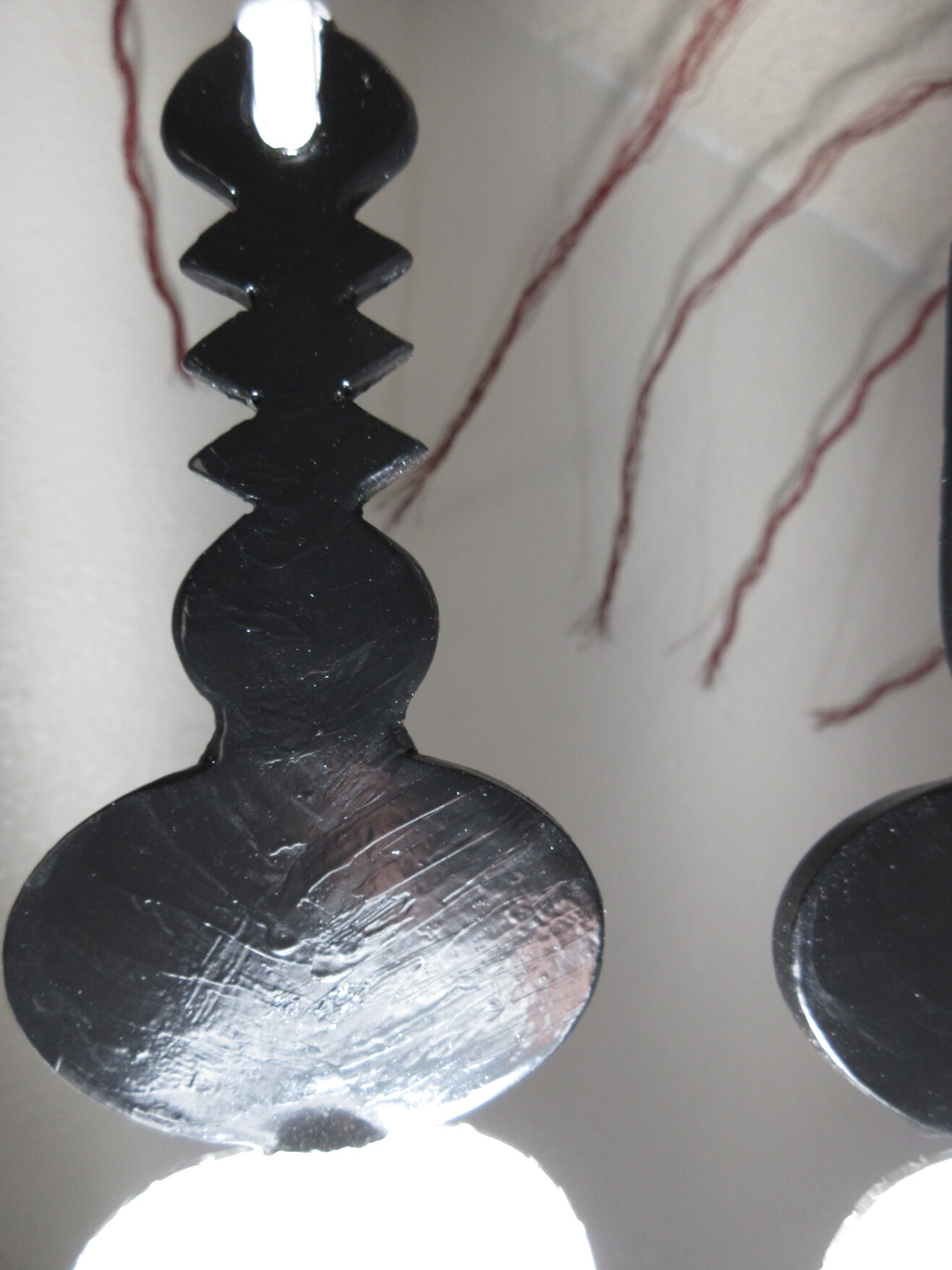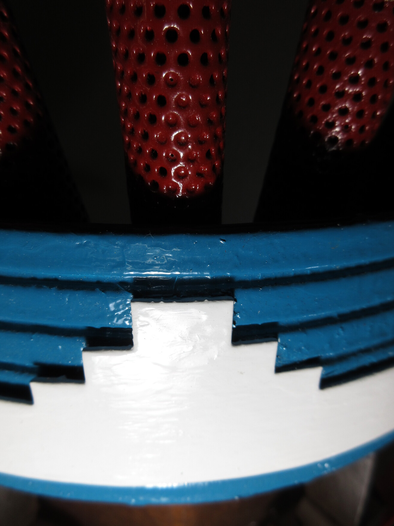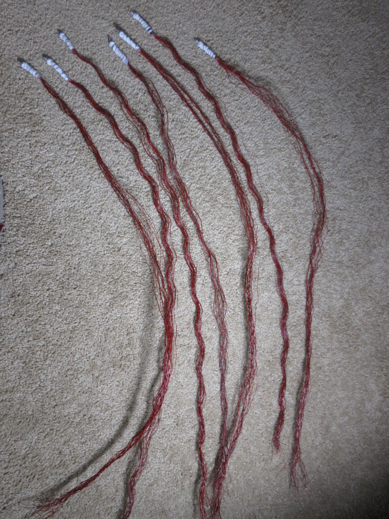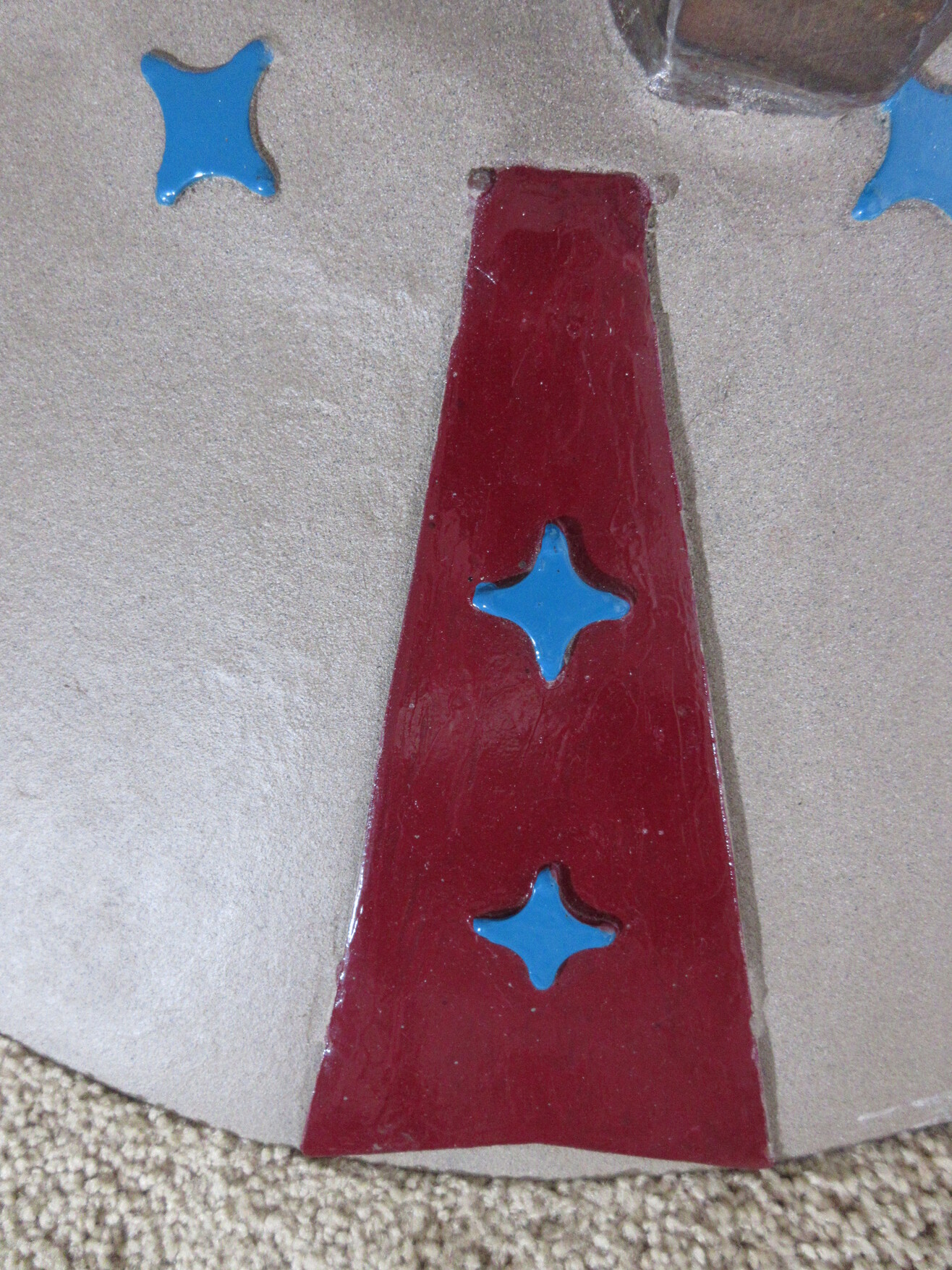 The red bottom of each "feather" is trade felt surrounded by trade brass rings.