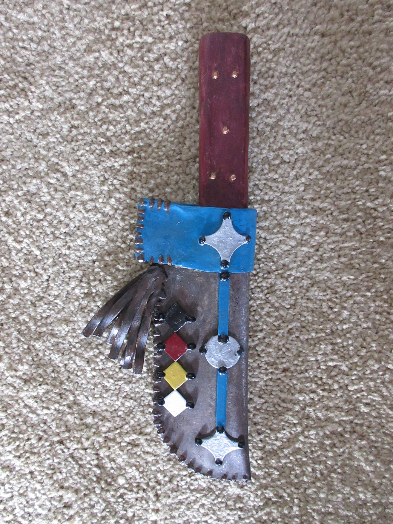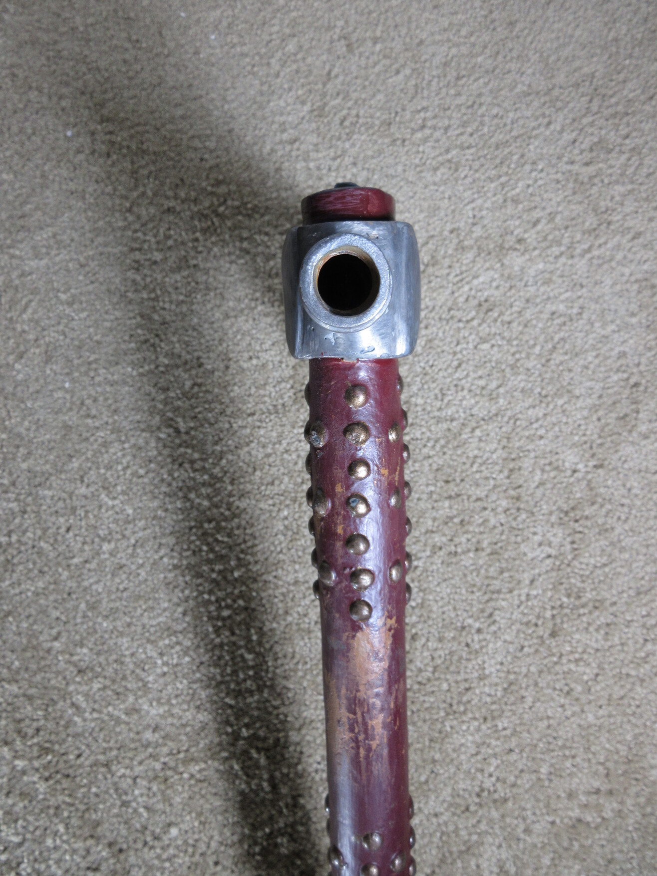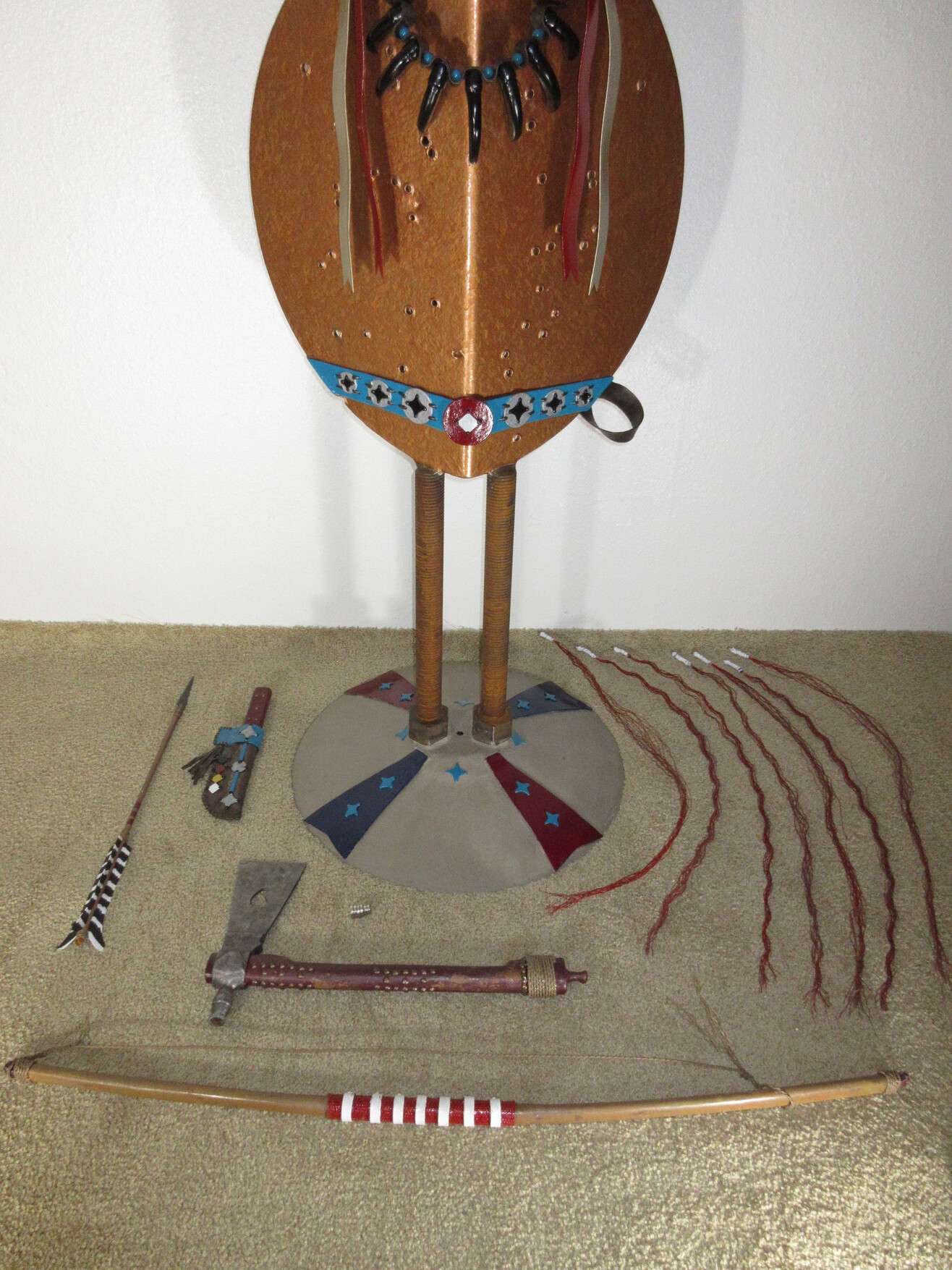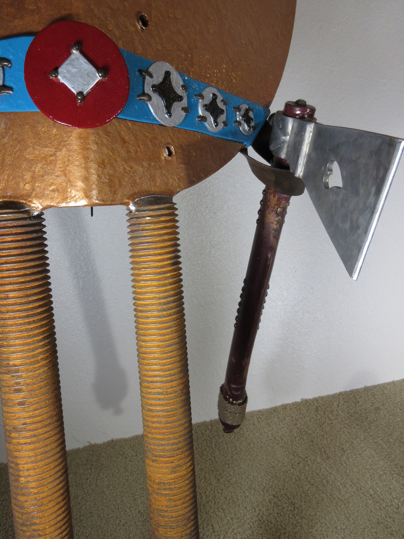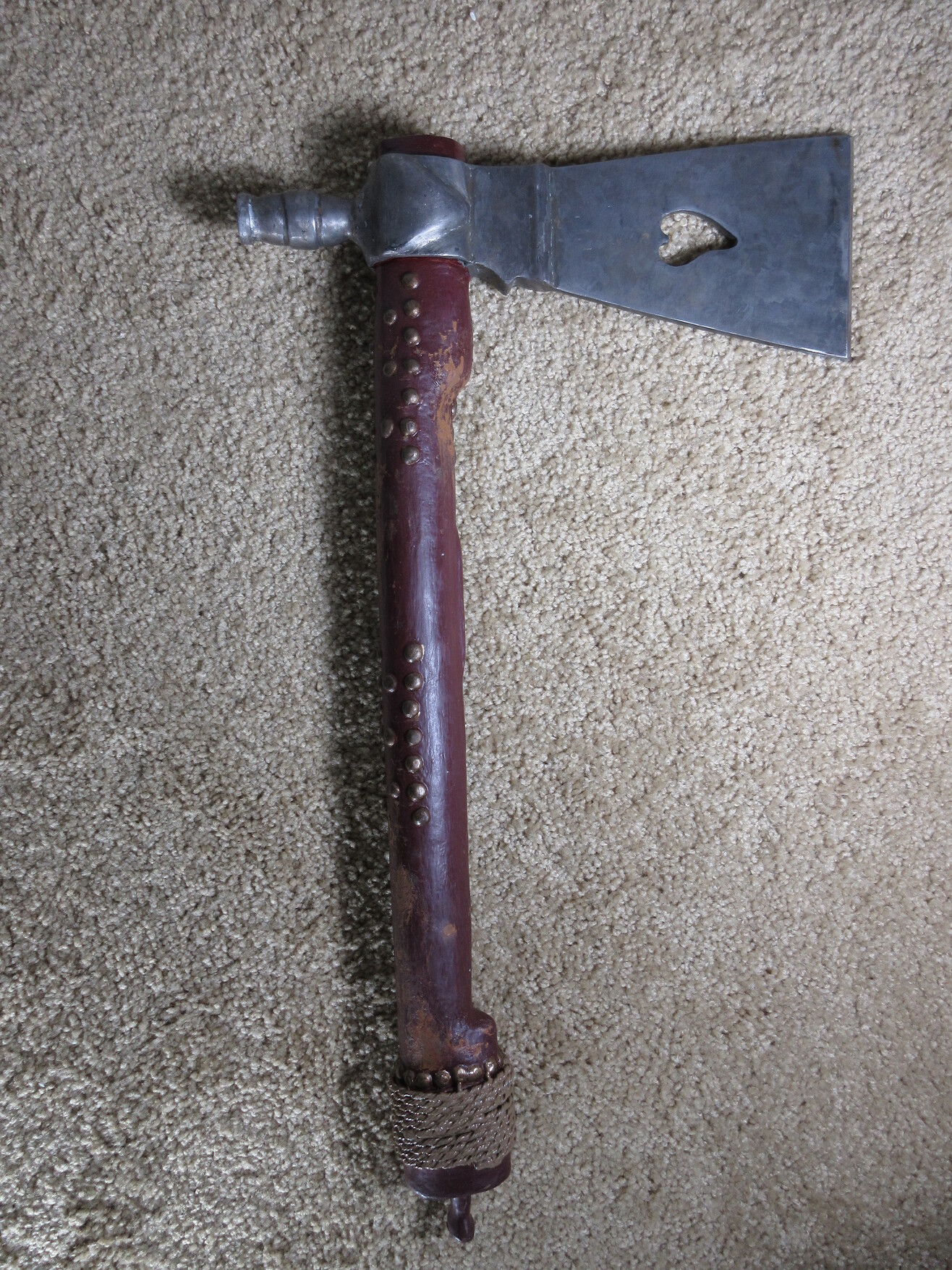 The "weeping heart" pipe trade axe head and handle are true to form.
